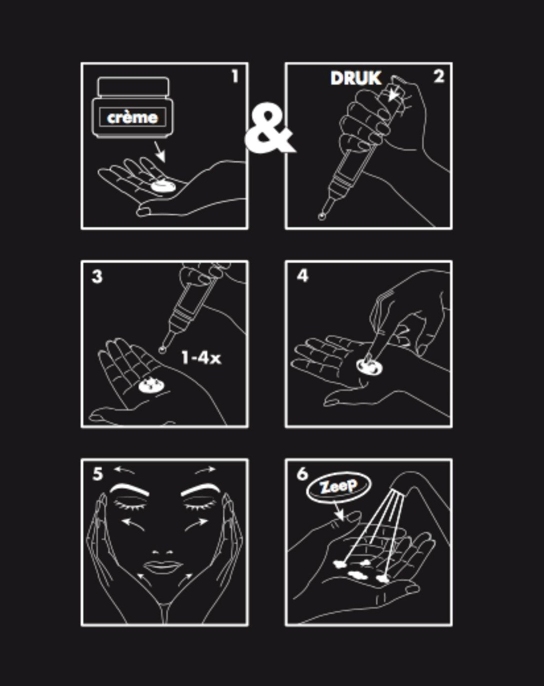 Voeg de Award winning bruiningsdruppels eenvoudig toe aan je favoriete dagcrème, bodylotion of zonnebrandcrème voor een natuurlijke egale teint op maat. Dosering voor het tannen van het gezicht: